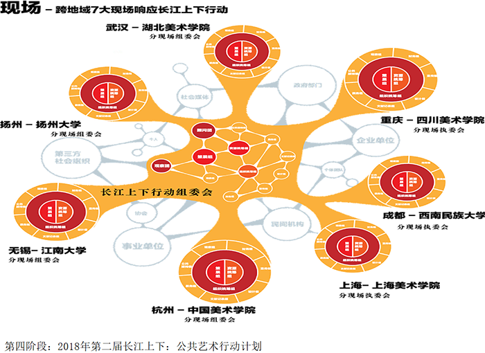 2019年,“第二屆長江上下:公共藝術行動計劃”繼續舉辦,包括國美在內的多家長江沿線院校也加入了我們的隊伍,覆蓋城市包括上海、杭州、無錫、武漢、重慶、成都等,共同進行區域性聯合行動,沿線城市有共性,也有很大差異,因而提供了豐富的藝術實踐現場,拓展中國公共藝術現場。我們發展了共同的顧問團、策展組、資源統籌組等組織架構,以一個共同的理念來策劃活動,思考怎么通過藝術來賦能鄉村文化振興。
