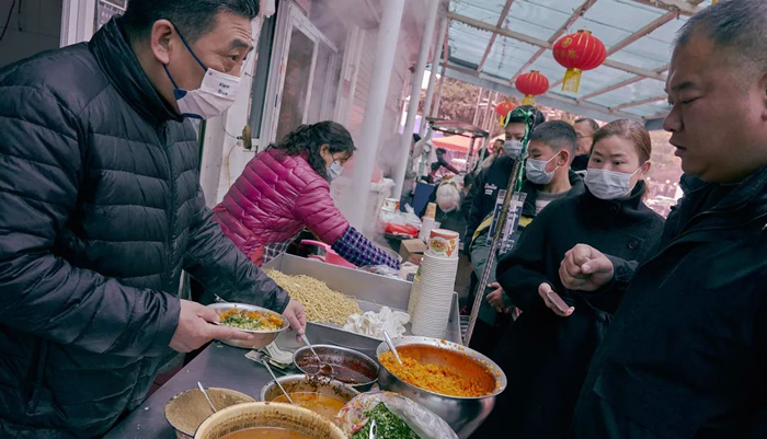 2022年11月,小南門早餐店門前,信陽人的一天是從一碗熱干面開始的。(攝影:波妮,圖片來源:TBB團隊)