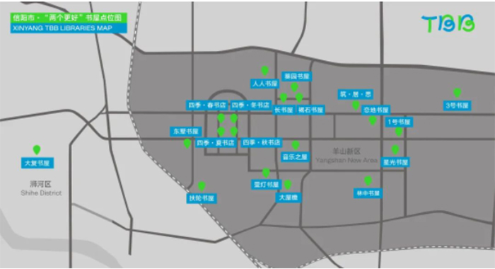 信陽市首批二十座“兩個更好”書屋點位圖。(制圖:謝凌慧,圖片來源:TBB團隊)