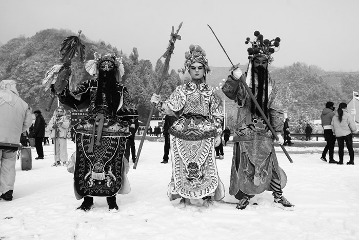 隴縣鄉村社火隊走在皚皚白雪中 喬曉光拍攝 2019年 圖片來源:《村莊里的藝術》