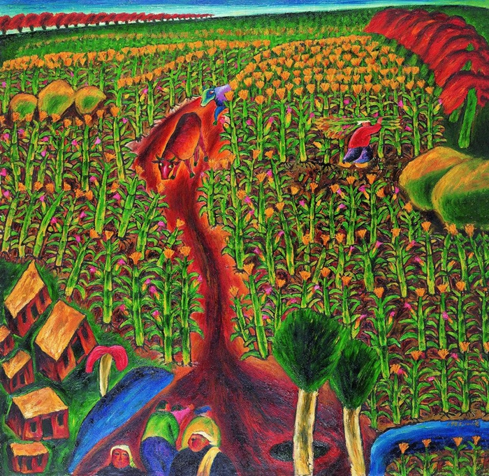 喬曉光 《玉米地》布面油畫 1985年 (《中國油畫1700-1985》封底及第163版圖,江蘇美術出版社,1988年)