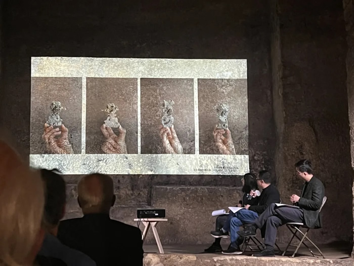 在法國波爾多圣埃美隆巨石教堂分享即將在黃巖石窟文化中心舉辦的展覽和系列活動,2024年9月
