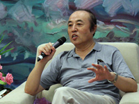 非常感謝各位老師提的意見,我很長時間以內都是在老師的支持關懷下成長的。我那天跟尚老師說了一句話,我說我之所以能堅持畫到今天,一個很重要的原因就是因為有眾多的老師在關心我,并且不斷給我提意見。如果我自己玩的話,可能我早就不玩了,因為我自己還要工作,我先并不是一個專業的畫家。因為繪畫在我的心目中比什么都重要,一種很奇怪的現象,我只要一拿起畫筆,什么都忘掉了,以后有機會你們可以看看我現場畫畫的片子,我對繪畫付出的代價遠遠超越一切。沒有別的原因,只因為我自己非常喜歡,所以在工作之余也偷偷畫,原來在家里偷偷畫,沒有畫室,慢慢有了畫室,也是熬出來的。我最想說的一句話,我從來沒有開過學術研討會,今天是第一次,我最想聽各位老師對我的批評,你們提了那么多寶貴建議,明年的今天,如果我要順利的話,我能畫出更好的作品,你們提的這些意見都非常好,這是我未來成長的路上用什么都買不來的。