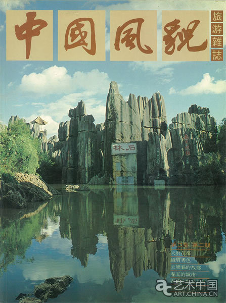 (1)勞偉先生散文《奇觀掠影話石林》(《Discover the Stone Forest》附部分攝影作品)一九八二年發表于中國國家旅游局重要出版物《中國風貌》<第二卷、第二期(總第六期)>中文版、英文版,在歐美、港澳和全國各省市大量發行。本期封面為石林代表性攝影作品《雄拔石林映洌泉》,勞偉先生散文《奇觀掠影話石林》(《Discover the Stone Forest》)標題同時刊發于本期封面。