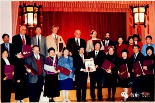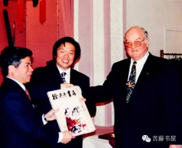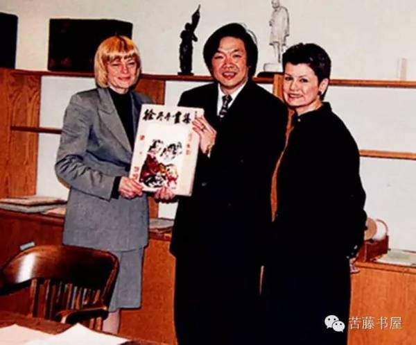 徐冬冬教授在芝加哥舉行儀式向芝加哥大學、西北大學、芝加哥美術學院、芝加哥公共圖書館等125家文化教育機構放置《徐冬冬畫集》。(中為中國駐芝加哥總領事黃東壁先生)(1998)