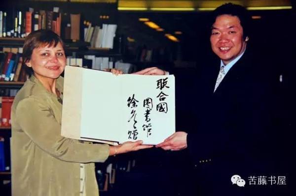 徐冬冬教授在紐約舉行儀式向紐約公共圖書館、哥倫比亞大學東亞圖書館、大都會藝術博物館、古根海姆美術館等195家文化教育機構放置《徐冬冬畫集》(第一圖右一為中國駐紐約總領事邱勝云先生)(1998)