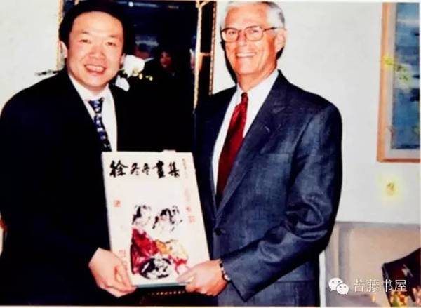美國駐中國大使館大使普理赫先生接受徐冬冬教授捐贈給美國駐中國大使館的《徐冬冬畫集》(2000)