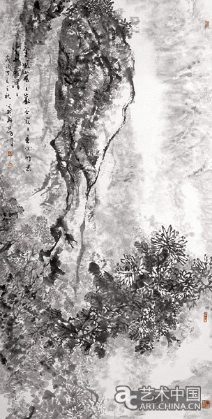 勞偉的畫,筆墨皆從書法中來,流露著金石味,仿佛取意于漢代的畫像磚石,無不古厚拙勁、深沉雄蒼,這是勞偉的山水畫不同于古人處,也不同于今人之處。他的脫略古今之處還在于取材的獨具慧眼。他沒有畫江南也沒有畫北國,而是心系云南,情寄云南,只對彩云之南的云嶺高原的山情水境抱有濃厚的興趣。他偏愛那里的“幽壑含清輝”,鐘情那里的“深谷蘊蒼?!?,癡迷那里的“云嶺之蒼顏無盡藏”,也神馳于那里的“云下林泉能洗心”。這是古人和今人的畫筆很少涉獵的地方,帶有北方之壯偉、江南之秀麗、東南之幽奇、西南之神秘,都不乏開闊的空間、層疊的峰巒、巖壑的起伏、云行的變幻、茂林的華滋,這“天風浩蕩兮彩云之南”的美景,今天已被勞偉發現和獨占。勞偉的目標是以云南自然景觀為視野,創造云嶺高原山水的新形式、新語言、新境界,不斷推出“立于前人之外”的新面貌,為我國當代山水畫壇增添新的篇章。