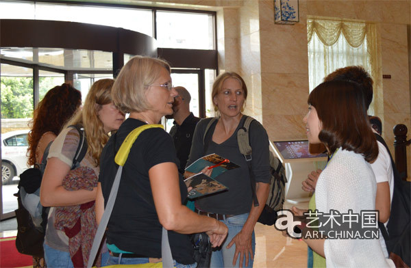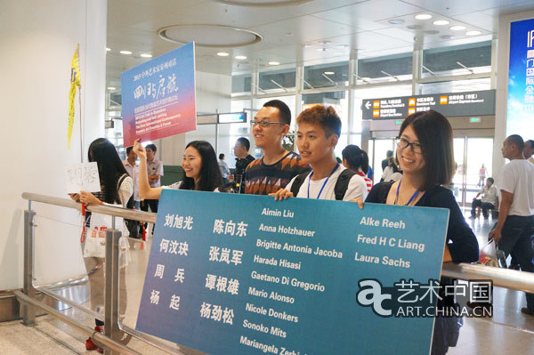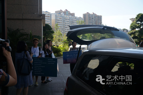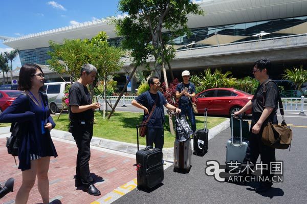 工作人員迎接藝術家譚根雄、陳向東、周兵、張嵐軍抵達