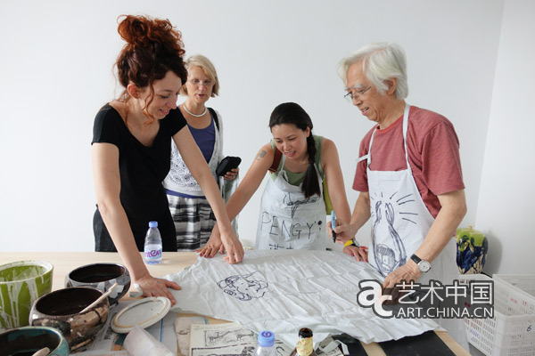 今天,萬旗藝術中心的手拉胚師傅幫德國藝術家Alke修整胚體,師傅的嫻熟技藝讓Alke贊不絕口,他們各自用自己的語言解釋自己所表達的意思,在那一瞬間語言仿佛不是障礙。師傅邀請Alke嘗試手拉胚的制作,她用心地詢問了如何把握刮刀的角度,如何控制底盤的速度,雖然試驗并不是十分完美,但體驗的過程比結果更加重要,中國老師傅的專注和樸實成為她這次中國之旅的深刻印象。