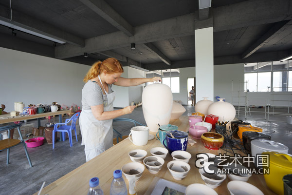 德國Keramion陶瓷藝術基金會美術館館長Gudrun Schmidt-Esters就此次活動為何選擇在德化做陶上午采訪了藝術中國主任勾霞,勾霞說:“德化是中國的瓷都,海上絲綢之路的起點,當今的藝術形式更為多樣,這么多不同文化背景和文化經驗的藝術家在一起創作,作品的多種可能性是我們期待的,加上窯變的不可控和偶然性更是陶藝的魅力所在?!?/p>