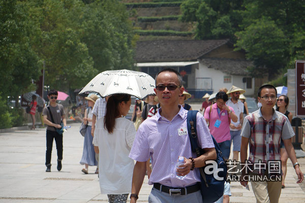 7月18日,早晨第一縷陽光灑下清源山,鳥兒啁啾聲中我們迎來了新一天的旅程,在一頓簡單的中式早餐之后,大家坐上大巴車,前往漳州參觀云水謠和南靖土樓。在車上,德國藝術家Alke Reeh看到小學生們穿著統一,背著書包,很好奇他們去做什么,工作人員告訴她,這群孩子們正處于假期中,他們來到清源山進行登山運動。接著她說,在德國進行藝術創作的業余時間,她很喜歡登山和騎自行車,有時候也會游泳,在這次中外藝術家泉州對話活動結束后,她會和女兒一起繼續游覽中國,為此,她詢問了我們平常是如何計劃旅行以及選擇怎樣的交通工具。她對昨天的木偶戲印象深刻,希望能和女兒一起再看一次。