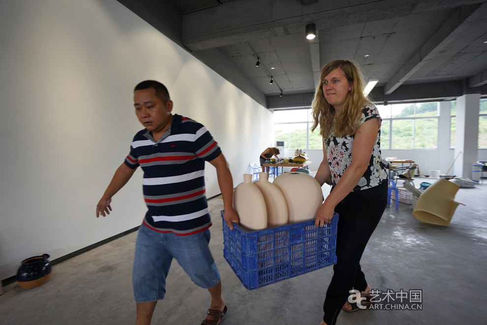 工人與德國藝術家Anna搬運作品