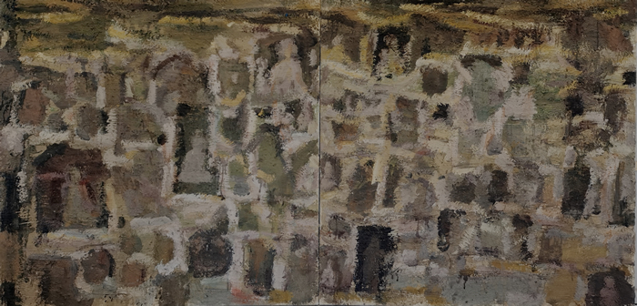 《敦煌系到之北石窟印象》,150cmx300cn,綜合材料,2022年