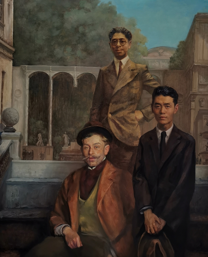《勞倫斯的學生呂斯百與常書鴻》,160cmx130cm,油畫,2022