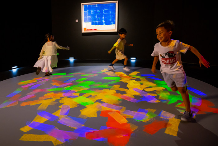作為一位中國的現代抽象藝術家,蕭勤老師對生命的能量的看法和他的堅持跟美高梅的藝術文化方面的理念是相同的。美高梅一直都期待舉辦蕭勤老師的個展,經過長期和策展人許劍龍先生的溝通,我們希望能利用美高梅獨有的黑盒子劇院將蕭勤老師的作品呈現給觀眾。通過2,800萬像素的巨幅熒屏呈現蕭勤,希望以一種輕松的方式讓大家接觸到藝術。在這次特展中,賓客可以通過科技體驗互動性的藝術作品,走進蕭勤老師蘊含東方哲思的藝術宇宙。美高梅金獅大堂中的數字藝術創作體驗還可以讓觀眾使用蕭勤老師的色彩和圖像創造自己的數碼繪畫并留作紀念。同時,本次展覽中有沉浸式的、互動性的藝術作品,可以讓不同年齡段的觀眾了解蕭勤老師的創作靈感、理解作品中的顏色和符號。我們在展廳里也看到很多小朋友,他們也許不知道蕭老師是誰,但是他們在體驗過后都很喜歡這次展覽,并通過科技及娛樂接觸到藝術文化。(圖片提供:美獅美高梅)