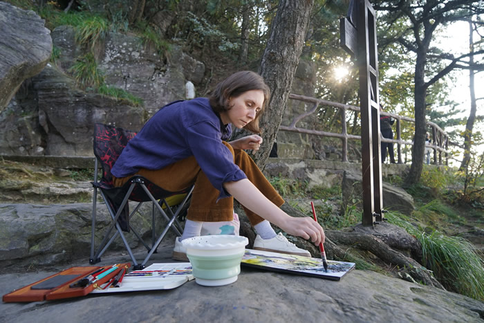 美國藝術家、學者大衛·布魯貝克在廬山寫生