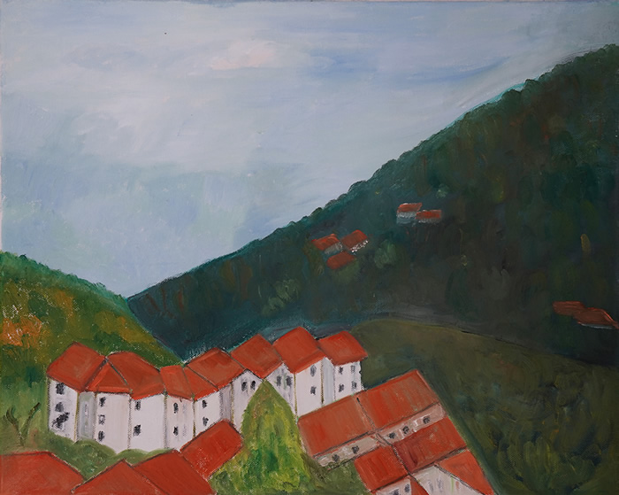 中國藝術家李偉牯嶺鎮中心廣場寫生作品