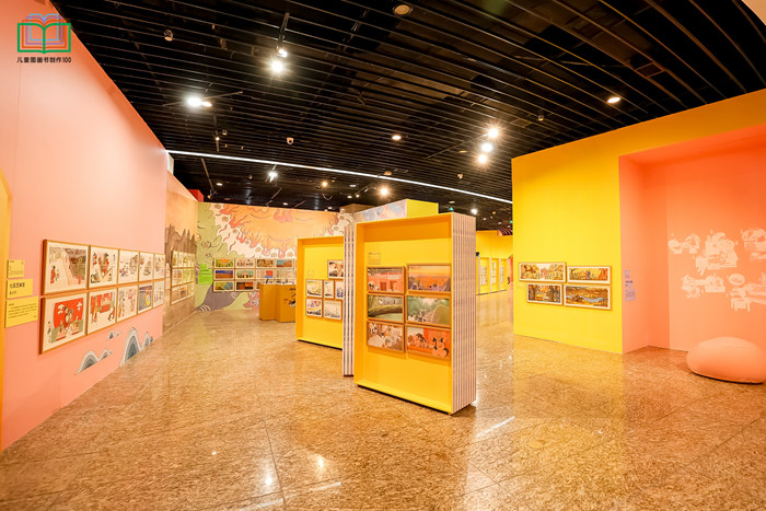 作為100件優秀兒童圖畫書作品首次面向公眾展出,“以美筑夢——‘兒童圖畫書創作100’作品展覽”的展陳設計獨具匠心,以書作為貫穿展覽的的造型意象,在雅致書香和繽紛色彩之中,為觀眾呈現一場充滿互動感、趣味性、立體化、沉浸式的圖畫書之旅。
