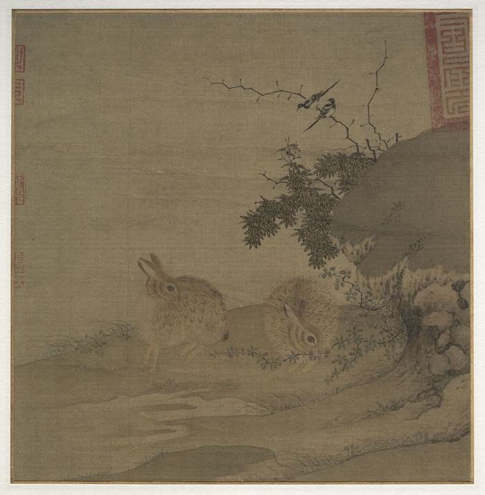 南宋 李永 喜鵲野兔圖