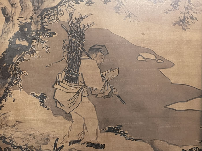 明 張路 《負薪讀書圖》局部