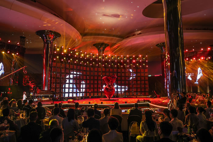伴隨著小提琴演奏家陳曦、國際鋼琴家孫佳依、以及著名舞蹈家胡沈員的殿堂級表演,在鵬瑞集團董事局主席徐航先生與佳士得亞太區總裁Francis Belin(龐智鋒)先生的共同揭幕下,杰夫·昆斯世界級雕塑作品《圣心》在萬眾期待下終于揭開神秘面紗。