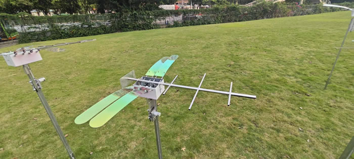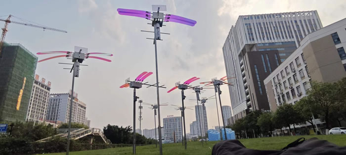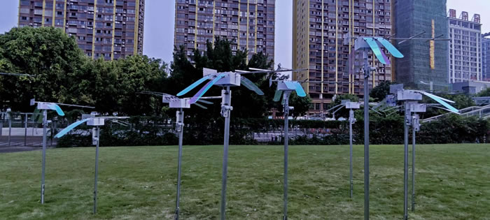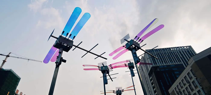 從前,電視天線是連接世界的橋。作品《信息接收中》以此為靈感,天線幻化成振翅蜻蜓排成矩陣。作品旨在喚醒童年記憶,讓人憶起歡笑與期待,科技與情感融合,如時光寶盒引人深思。