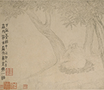 人物山水圖冊 十二開之一:于無憂林中 金農 清 縱24.3厘米 橫31.2厘米 紙本 設色 故宮博物院藏