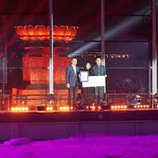 一德企業創始人、董事長陳?。ㄓ乙唬┯^看展覽2