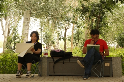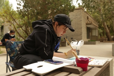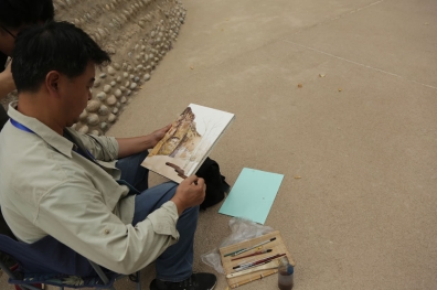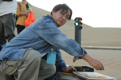 中國藝術家駱驍在寫生