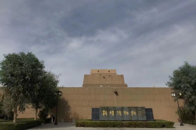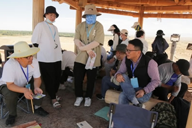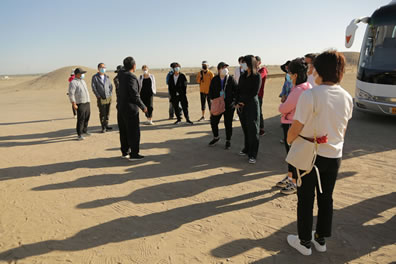 上午藝術家參觀佛爺廟灣魏晉墓、敦煌-陽關舊址,下午藝術家參觀陽關博物館,采風寫生。