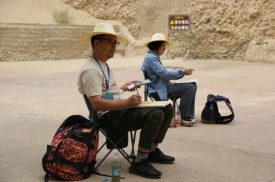 中國藝術家李敦在莫高窟前寫生