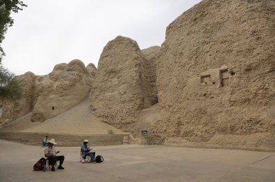 中國藝術家岳鋒和王玉芳在西千佛洞前寫生