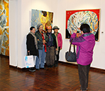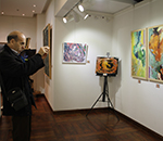 展覽策展人彭烈洪在開幕式上向大家介紹金善的繪畫