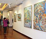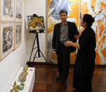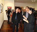 展覽策展人彭烈洪在開幕式上向大家介紹金善的繪畫
