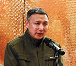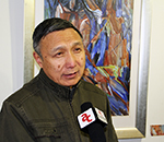 上苑藝術家聯合會主席李向明在展覽現場接受藝術中國采訪