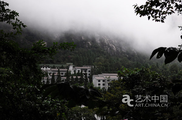 今天的行程安排是下山開學術研討會,沒想到在最后下山的一天,黃山開始云霧繚繞,煙雨迷蒙。一場秋雨一場寒,雖然溫度降低了,但大家的興致非常高,自11號上山以來,黃山的天氣一直晴好,有的藝術家還抱怨沒有看到黃山最有特征的云,在下山的這一天,黃山滿足了我們的愿望。