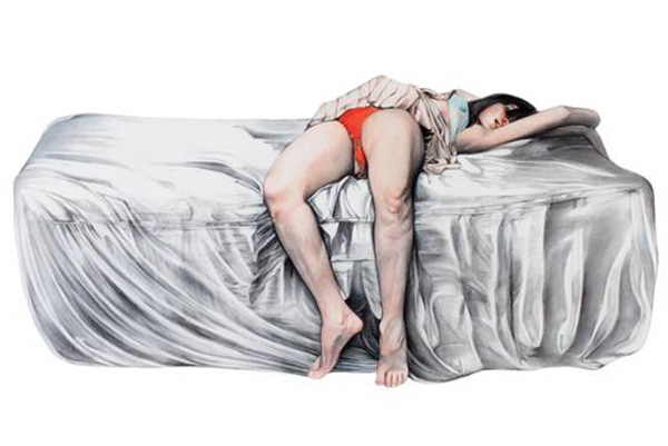 woman lying in bed, 2010, 90x141cm, color pencils on paper