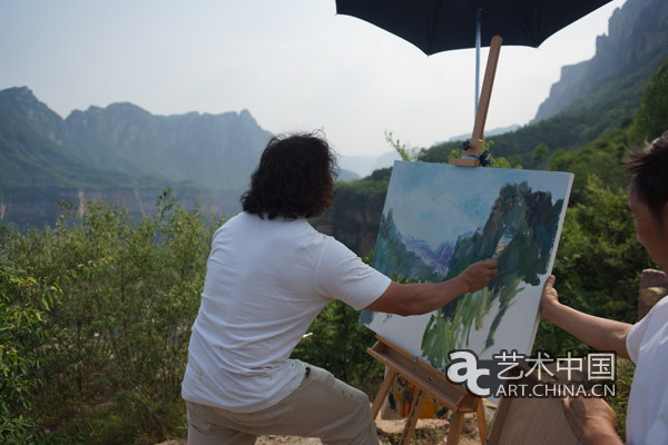 藝術家唐承華在太行大峽谷現場油畫寫生