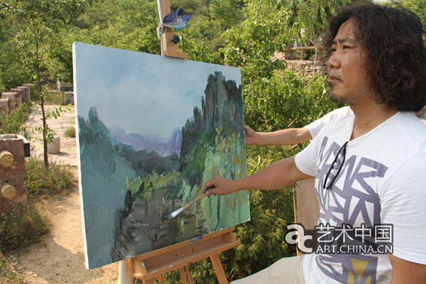 山上的近8個小時里,藝術家們一直在爭分奪秒的畫畫,從一個地方換到另一個地方,而成果也是一張接著一張。唐承華老師一天畫了三張油畫,以至于下山時如何帶回酒店成為難題。吳運鴻老師畫了兩張水墨作品,柳時浩畫了兩張水墨,林學明老師也畫了多張抽象作品。韓國藝術家許達哉老師也已將一本“太行山行記”繪制了一大半,他的畫最然小,卻追求著“靜中動”的妙趣,看他的畫,心靈會自然安靜下來。