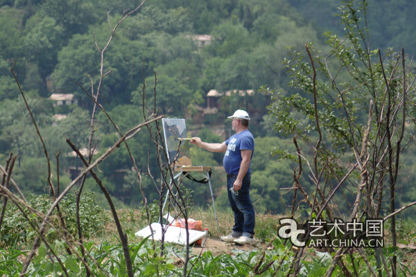 兩位俄羅斯畫家的色彩非常棒,斯維特萊娜喜歡在村口進行寫生,她一邊唱著俄文歌曲,一邊畫畫,顯得特別地高興,她說:“在我眼中,這座山已經活了?!倍恼煞蛑x夫楚科則將畫架立在天地之間,在田地環繞下,描繪著眼前的大山。