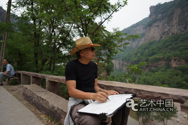 龍瑞先生今日到車佛溝寫生,他已經來太行山無數次,到過太行山的大多數地方,而他認為林州段太行山是最有特點的。車佛溝地區既有山石,也有民居和小溪流水,是寫生的最佳地點。