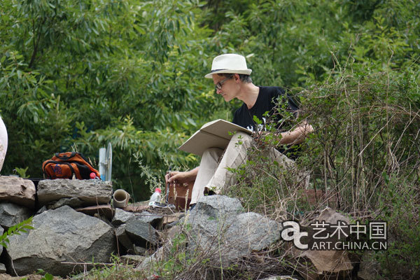 “2014中外藝術家太行對話”的第六天,云朵遮住了陽光,為藝術家們提供了絕佳的寫生環境。經過多日乘車之后,很多藝術家想在峽谷底部行走,中外藝術家們行走在已經干枯的河床上,像是在太行山的血管中找尋藝術的血液,而他們也已經完全進入了忘我的創作狀態。