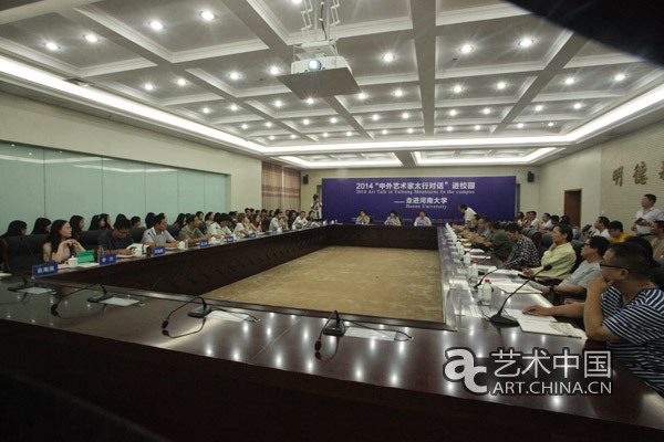 6月20日,“2014中外藝術家太行對話進校園”活動走進河南大學。出席本次活動的嘉賓有中國國家畫院副院長張江舟、中國網總工程師田玉成、中國國家畫院藝術交流中心主任蔡敏、清華大學美術學院繪畫系教授包林、駐華韓人美術家協會副主席韓國藝術家柳時浩、美國油畫家杰弗里、希臘藝術家瑪麗安娜、中州大學藝術學院院長于會見、中國外文局美術編審吳運鴻以及河南大學的領導及師生等。