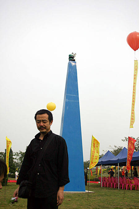 The panda statue is high up in the air sitting at the top of the sky-blue obelisk, which is varied and elevated from the dustbin on the streets. The base of the dustbin has been lengthened for more than ten times until it stands out into the clouds, while the cute little panda has been always sitting there. Panda dustbin, as a practical public facility, is almost a part of history in present daily life. To use it as the original mold of this work, shows in one hand, the author’s introspection and critics on the simplicity of aesthetic standard and the fragile congregation unconsciousness of old times, and on the other, the commemoration and reminiscence on the age of nonmaterial plain world. The author has started an argument on the invisible change of aesthetics context, which already began in the beginning of the social transform years ago. How to present the aesthetic feeling when referring to the environmental context is one of the focuses in contemporary art. It’s even hard to answer in today, and no wonder it was also a blurred area in the past. But to be sure, the history is supposed to be remembered. The panda obelisk is a monument erected by the author for any disappearing culture and aesthetic complex.