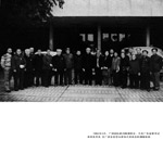 左起:黃胄 陳大羽 葉淺予 陳秋草 謝稚柳 俞致貞等集體照于北京 1981年7月