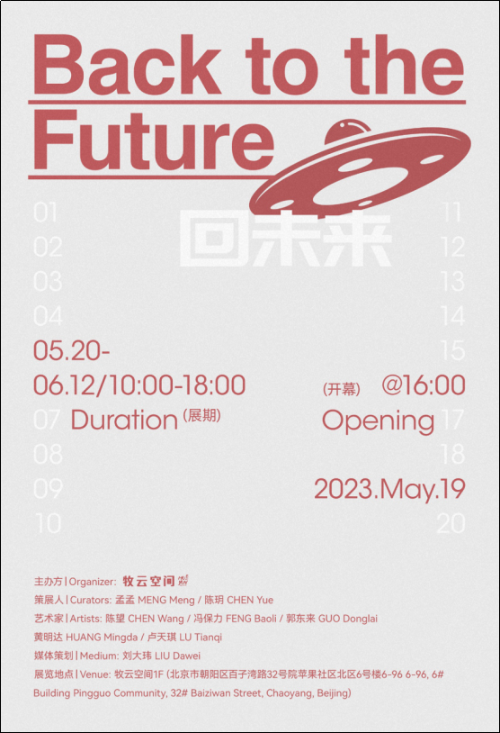 牧云空間將于2023年05月19日迎來空間重新啟動后的首次展覽亮相,本次展覽主題為“回未來”,由陳望、馮保力、郭東來、黃明達、盧天琪五位藝術家聯袂參展,孟孟、陳玥擔綱策展人。