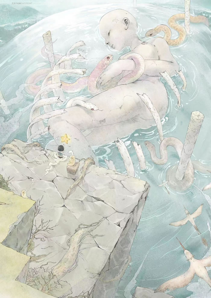 獨立插畫師/小紅書優質博主/NFT數字藝術創作者。擅長通過水彩、水墨等多種表現形式創作天馬行空的插畫作品,2023年,艾居開始以自己養的九條蛇為主角開始了自己的插畫新風格探索。畫面主張追求與自然界的和諧,認為人應該順應自然與大道的規律,與自然相處和諧共生,不應對自然進行過度干預。蛇作為畫面的主要元素,象征著生命與死亡,智慧與變化,神秘獨立與自由治愈。意在呼吁觀者,尊重自然界的多樣性和平衡,熱愛井敬畏我們生存的天地。