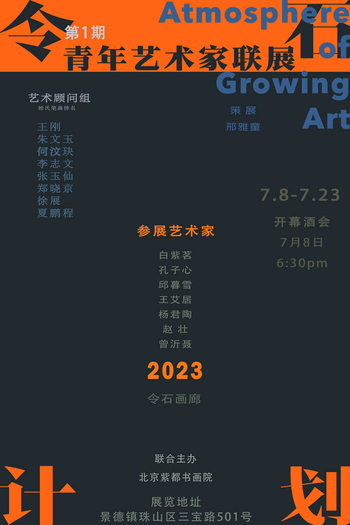 “令石計劃”第一期于2023年6月初開始招募,受到了國內外500多位青年藝術家的熱情關注,并收到近百封作品投遞。經過畫廊的嚴格篩選,挑選出了7位藝術家聯合呈現此次展覽,7位藝術家分別是:白紫茗、孔子心、邱暮雪、王艾居、楊君陶、曾沂聶、趙壯。