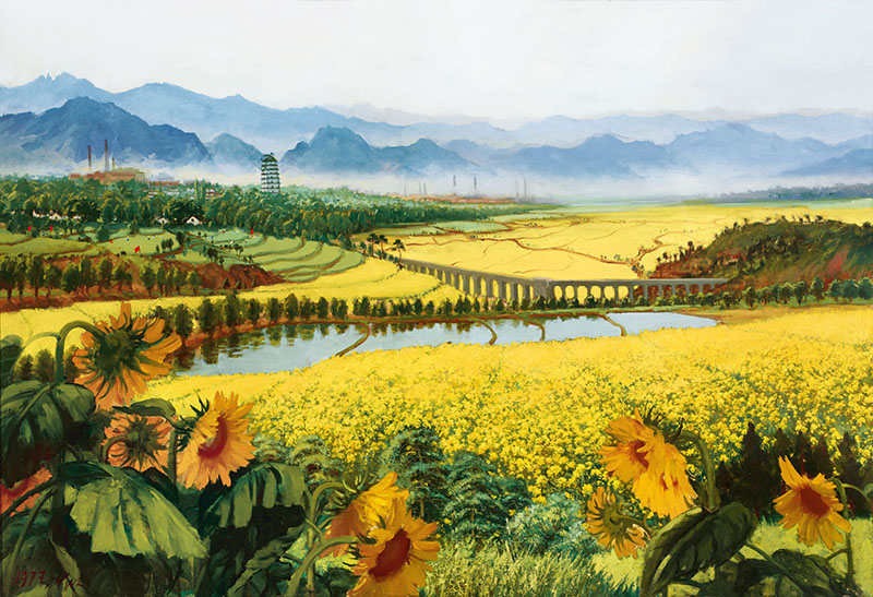 陳逸飛,《黃河頌》,1972,布面油畫143.5×297